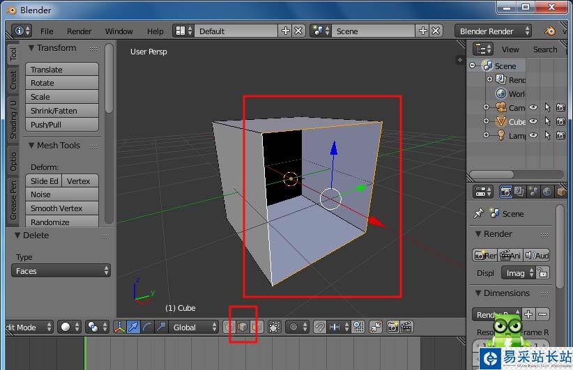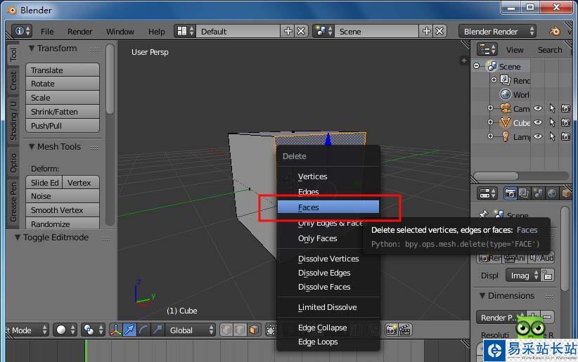 4、然后按“X”鍵選擇“faces”刪除這個(gè)面。