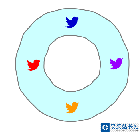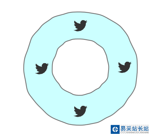 5、在游泳圈四個方向放置四只小鳥圖標,如下圖所示:
