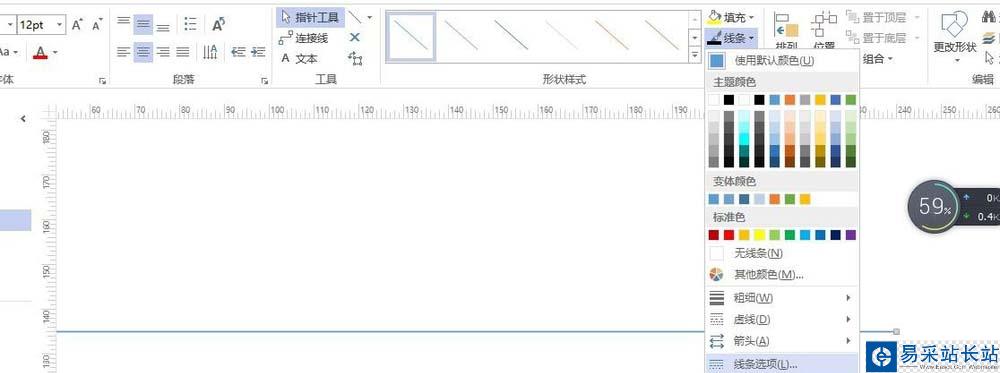 4、先畫一條母線,畫好后選中它,在上方線條一欄選中線條選項。在這個選項里面可以設置線條顏色、粗細等尺寸。非常方便實用。