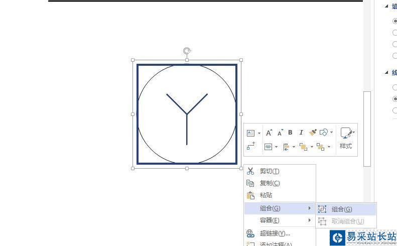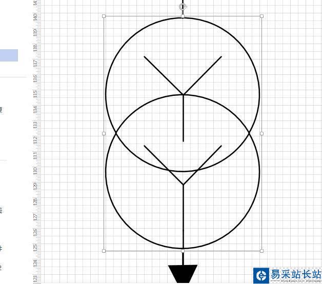 6、畫好后選擇”Y“和圓,右鍵,組合,讓它們組合成整體,便于調整和復制。然后復制,兩圓相交,繼續全部選中,然后組合。這樣就畫好了一個元件。
