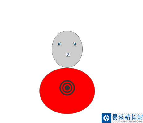 4、利用單選按鈕和復選框,設計出不倒翁的眼睛和嘴巴,如下圖所示: