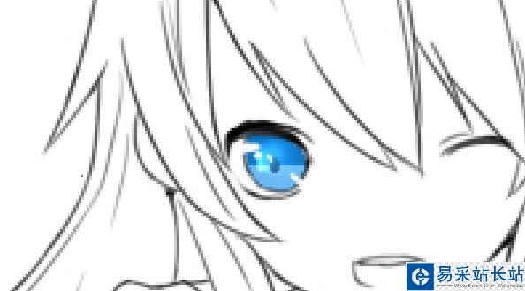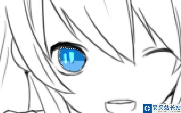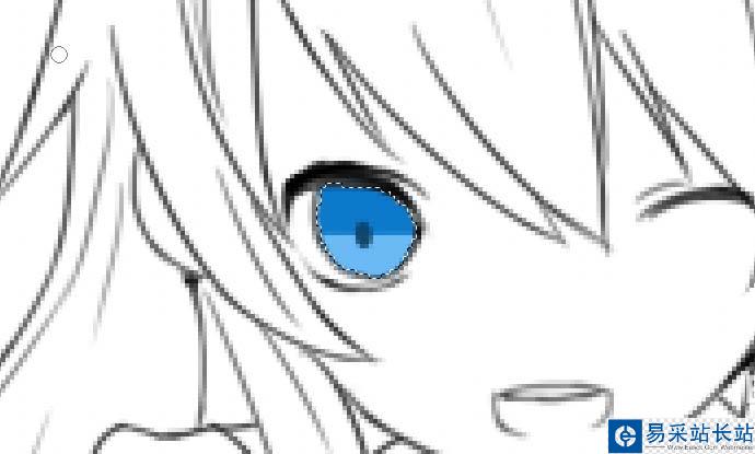 2、用魔棒工具選中眼睛區(qū)域,用馬克筆上一層較深的底色,后在下方畫上較淺的顏色,并畫上瞳孔。