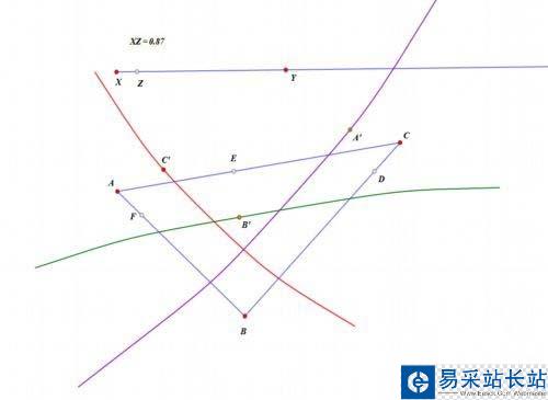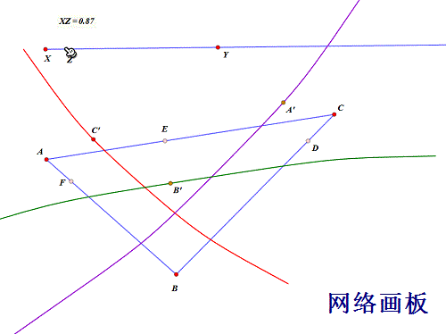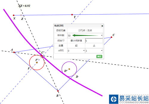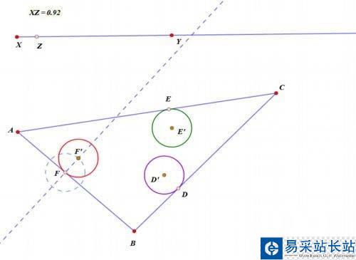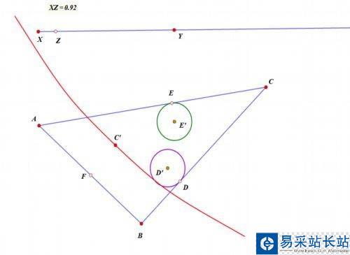 5、拖動(dòng)Z,這條紅色曲線發(fā)生改變,這是因?yàn)閷?yīng)的內(nèi)切圓半徑發(fā)生變化。