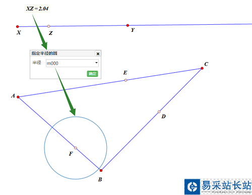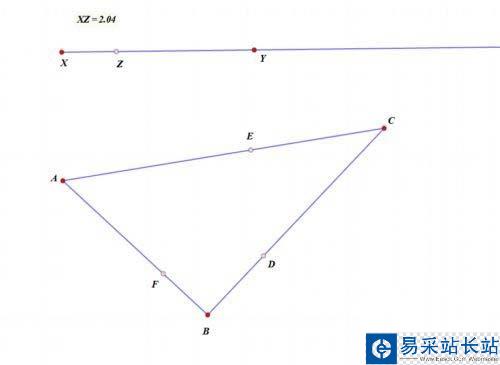 2、繪制射線XY以及射線上的半自由點(diǎn)Z,測量X、Z之間的距離。