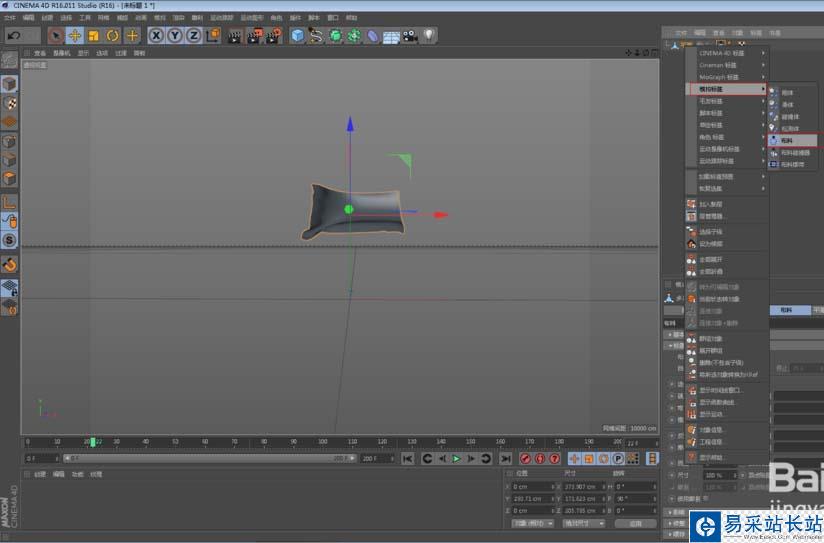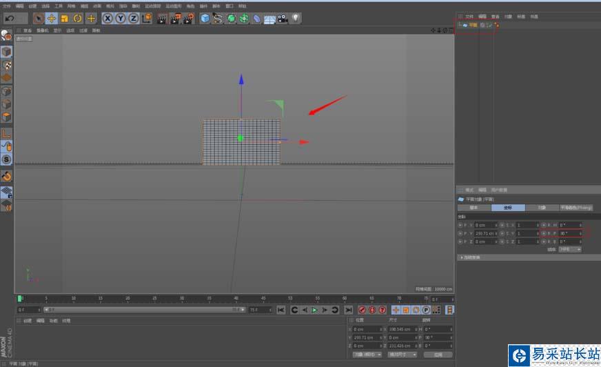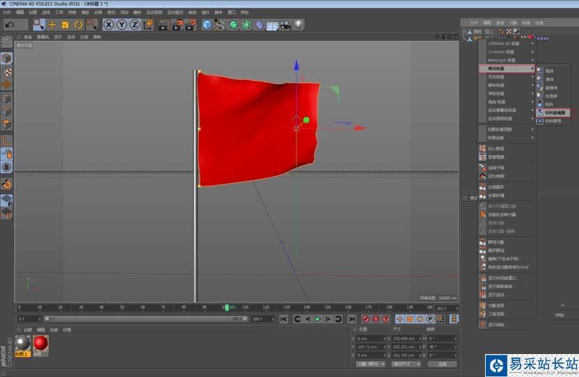 2、然后,將平面轉換為可編輯對象,并給它添加模擬標簽里的布料,這時你播放就會看到旗幟在往下掉落。