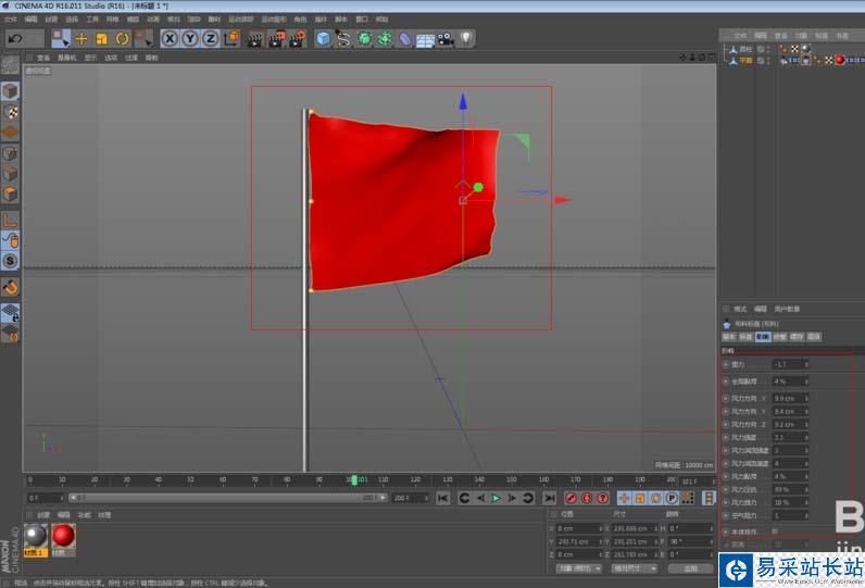 3、接下來,就是對布料標簽的參數做進一步的調整。播放觀看,你可能會覺得旗幟飄著就跑遠了,這個待會再做進一步的調整。