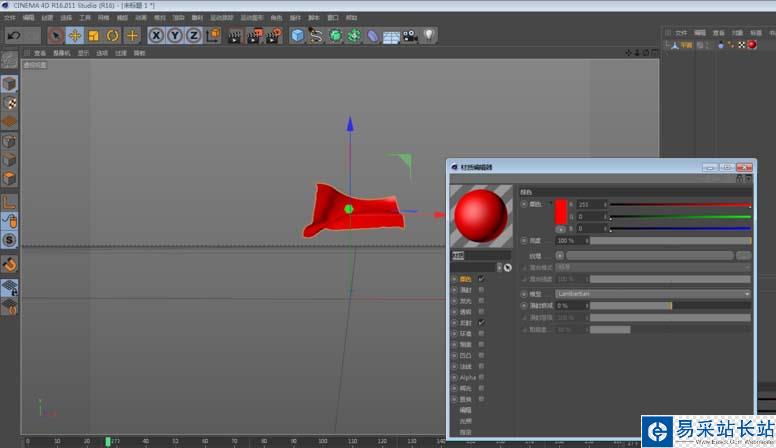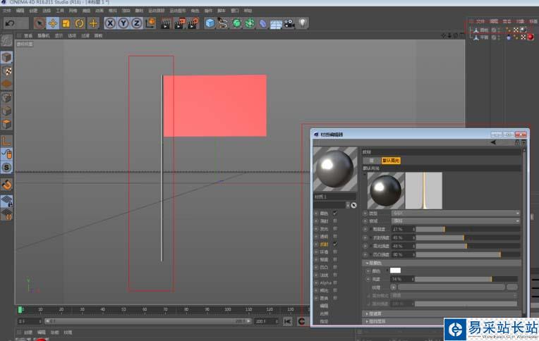 4、然后,給旗幟上個簡單的紅色材質(你可以用貼圖或者加上其他圖案做的更精細)。
