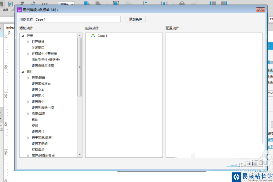 3、選中按鈕,點擊“鼠標單擊時”,打開用例編輯窗口,如下圖所示: