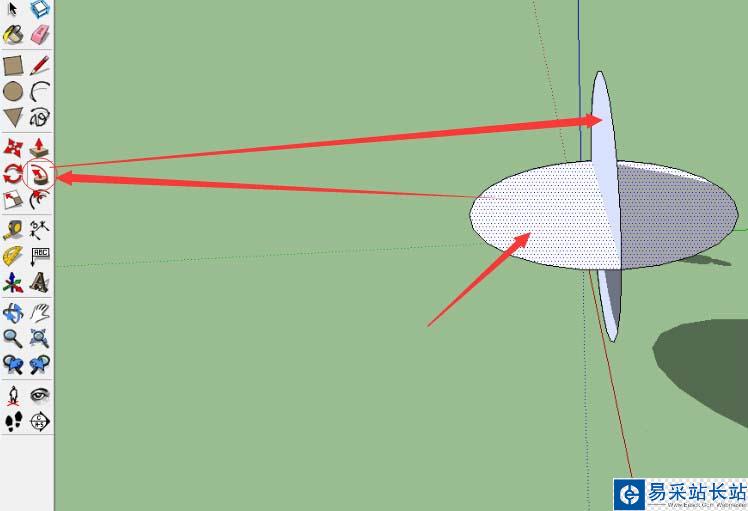 5、按空格鍵,退出畫圓工具,單擊選中水平面上的圓,然后選擇路徑跟隨工具,單擊豎直面上的圓的邊。即可得到一個球體。