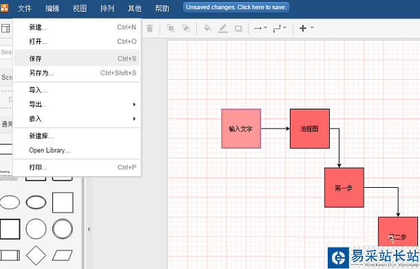 6、添加所需素材并成功繪制好流程圖后,點擊軟件菜單欄上的保存按鈕,即可對流程圖進行保存。