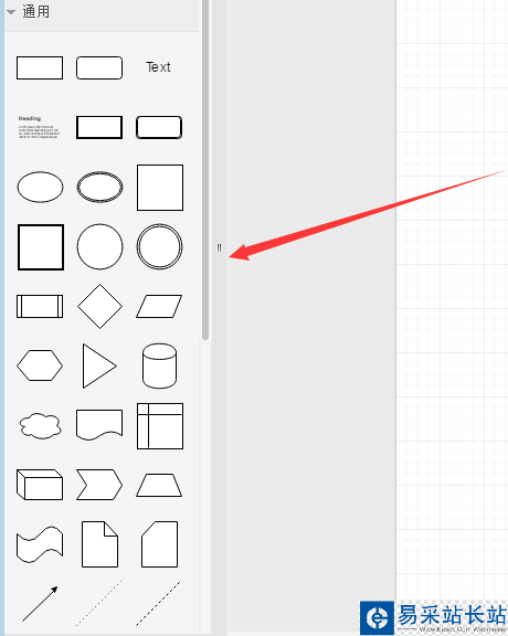 3、在打開的新頁面上,即可開始進行流程圖制作,在軟件左側“工具箱”中,選擇需要制作流程圖的素材。