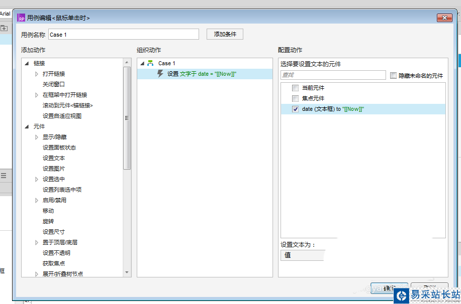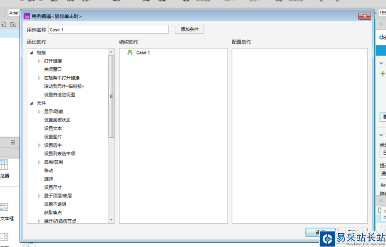 4、點擊“更多事件”,找到鼠標單擊時事件,打開用例編輯窗口,如下圖所示: