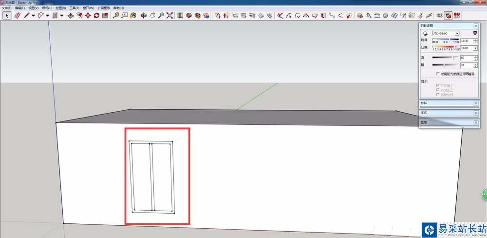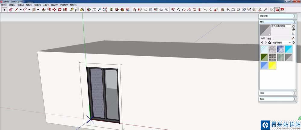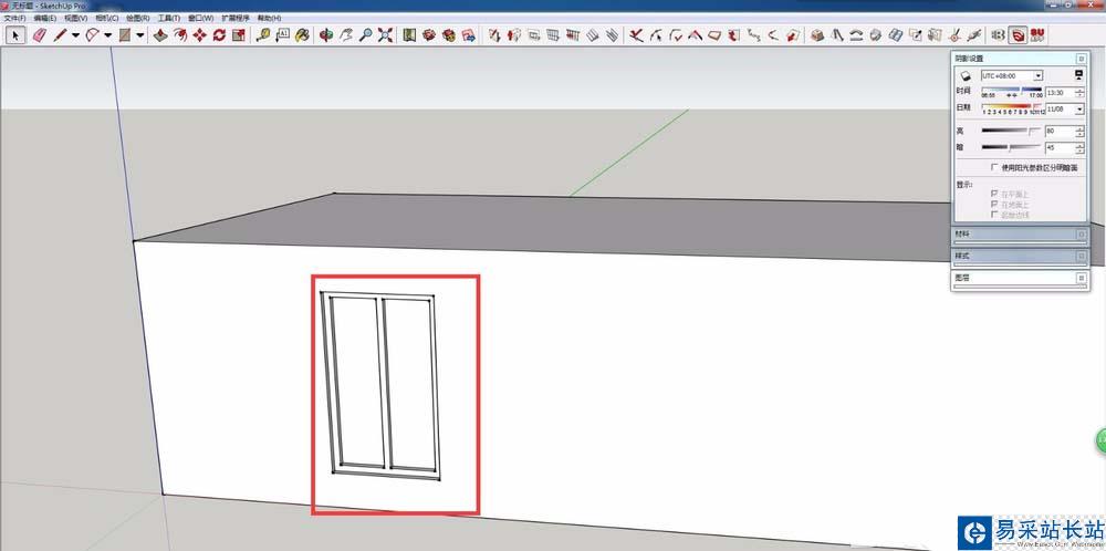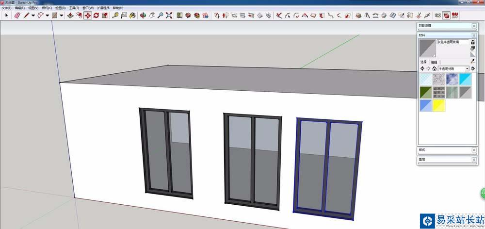 4、適用拉伸工具,將窗框與玻璃與墻體的進退關系表達清楚。