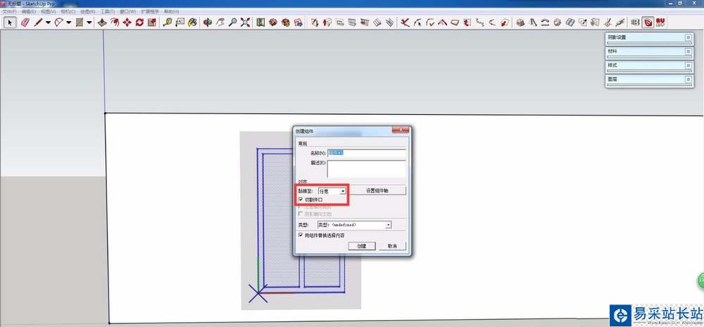 6、在創(chuàng)建組件選項中選擇粘貼至“任意”,并勾選“切割窗口”。坐標軸可設可不設。