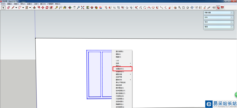 5、將窗戶框選,并點擊右鍵,選擇“制作組件”。
