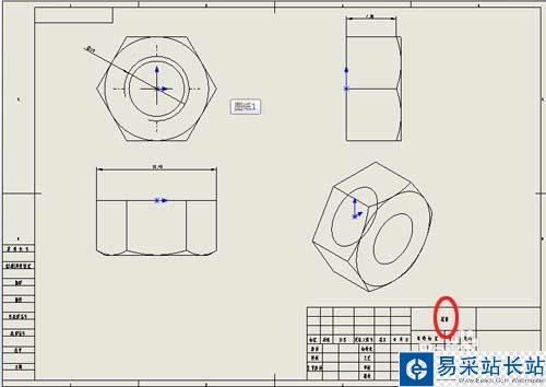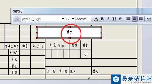 5、然后在右下角標題欄中添加元件名稱(如螺栓)等元件信息,如下圖