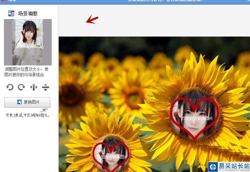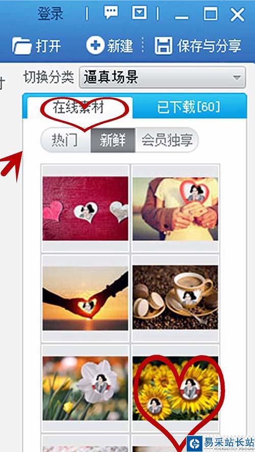 5、在右邊的在線素材中找到葵花場景,雙擊。