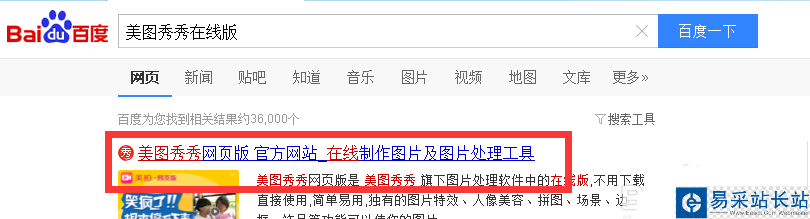 1、百度搜索“美圖秀秀在線版”,打開第一個鏈接