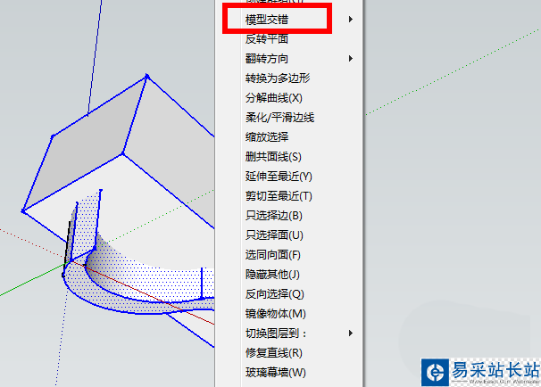 6、選中全部,單機(jī)右鍵選中“模型交錯(cuò)”,截面出現(xiàn)相交實(shí)線。