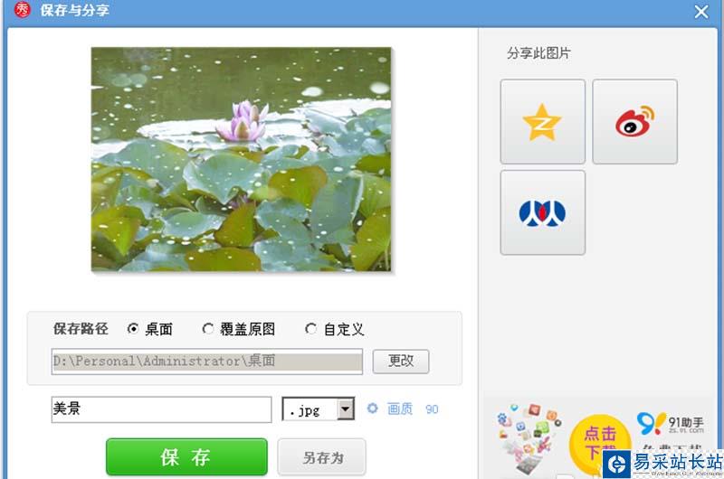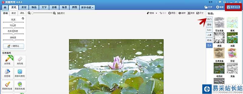 8、圖片調(diào)整好后,打開美圖秀秀軟件中單擊保存與分享。