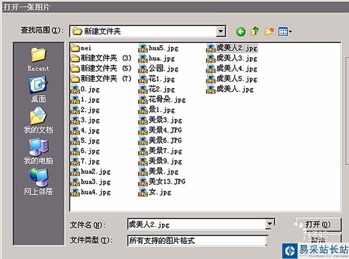 3、在美圖秀秀軟件中出現(xiàn)打開一張圖圖框,在這個圖框中找到圖片名稱,單擊打開。