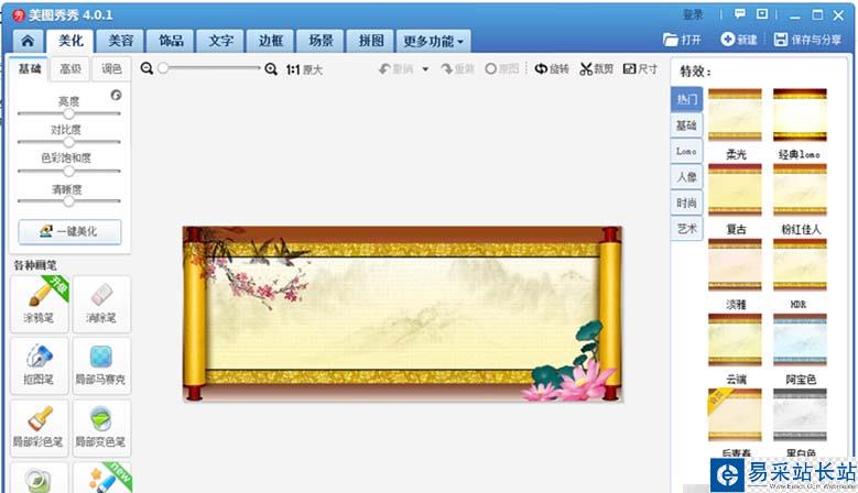 今天我就教大家使用美圖秀秀制作古風(fēng)畫卷的方法,很簡單,詳細(xì)圖文如下所述。