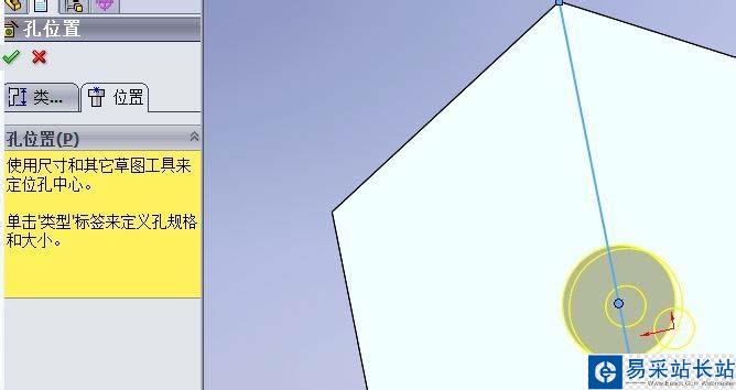 8、通過添加一系列的約束,最終確定孔的位置
