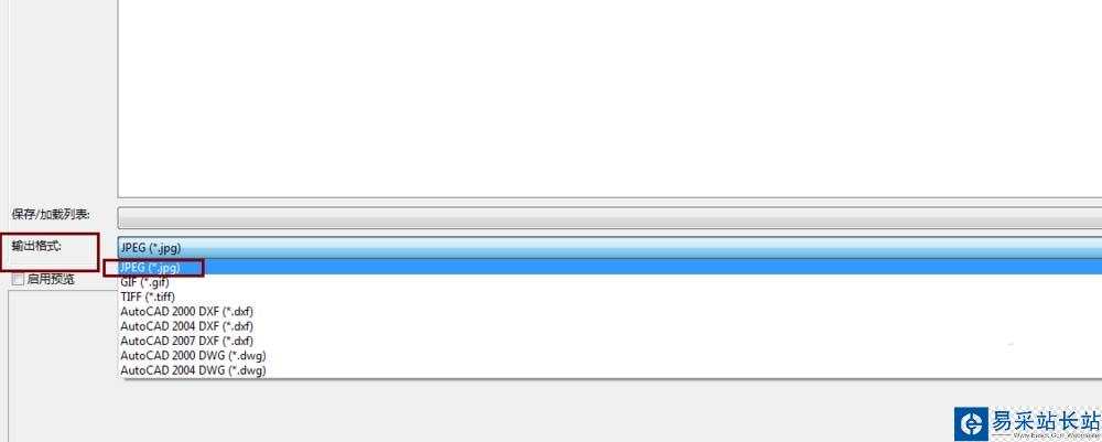 5、文件添加好之后,點擊“輸出格式”,把輸出格式設置為JPEG格式,因為JPEG格式就是圖片的意思。