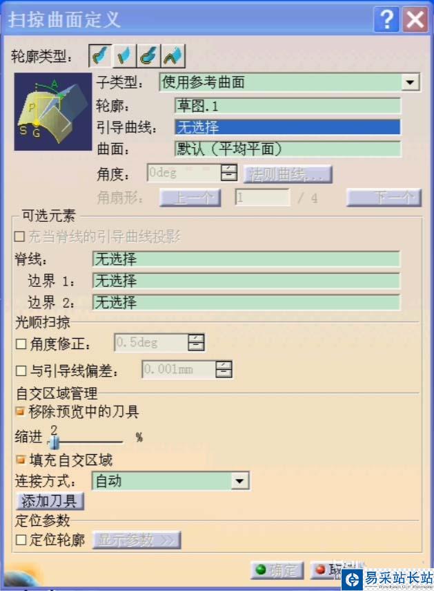 以上就是CATIA創(chuàng)成式曲面中的掃掠曲面的制作方法,錯新站長站還有更多的教程,希望大家可以繼續(xù)關(guān)注。