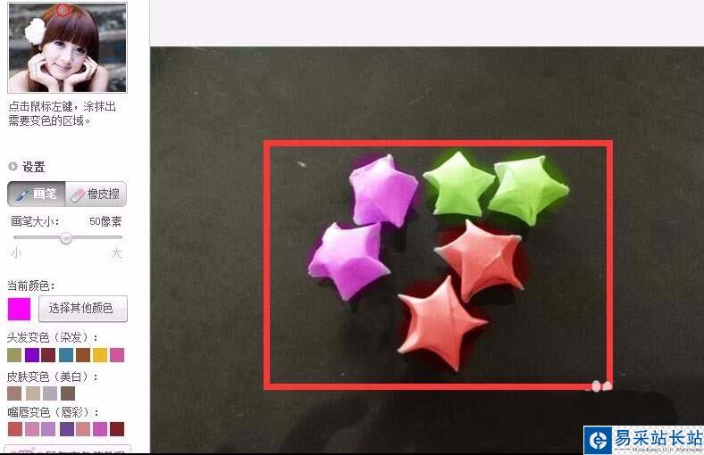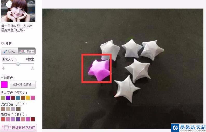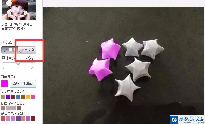 9、若是要改變顏色,或者不想要顏色了,就點(diǎn)“橡皮擦”即可褪去原來的顏色,讓相片回到最初。