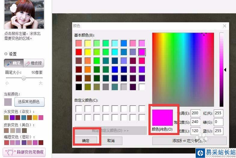 6、就會(huì)出來很多顏色的色板,選擇你想要的顏色,如果沒有喜歡的,也可以自己調(diào)色,選擇后再點(diǎn)擊“確定”。