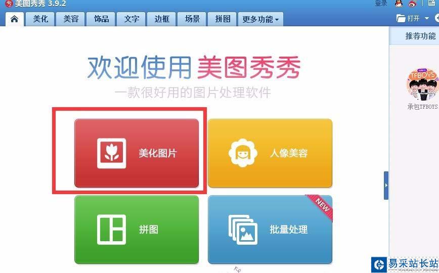 2、打開美圖秀秀的軟件,點(diǎn)擊“美化圖片”。