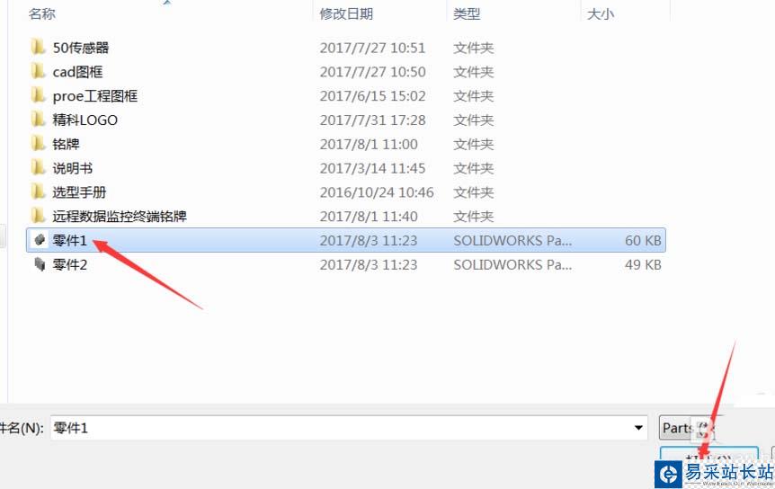 3、單擊插入菜單下的零件,彈出下圖窗口,選擇零件1即圓柱體,然后打開即可