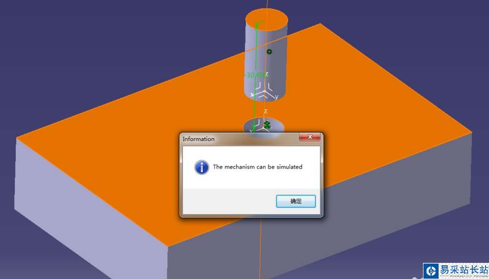 9、建立完運動關系后,我們可以看到彈出一個對話框,提示該機構已經可以進行運動仿真了。