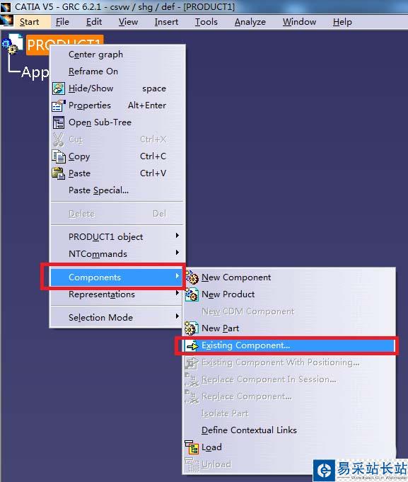 2、然后右鍵點擊Product,按圖示方法導入各個零件。