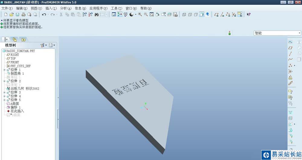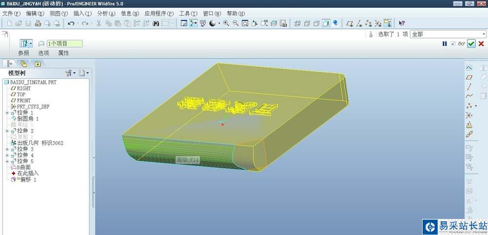 proe5.0使用偏移替換的前提是曲面不能被隱藏,然后就是替換的時(shí)候是實(shí)體面去替換這個(gè)曲面??梢杂镁€框模式確認(rèn)是否是曲面,曲面的顏色是實(shí)體顏色是不一樣的。