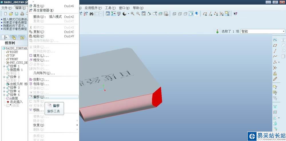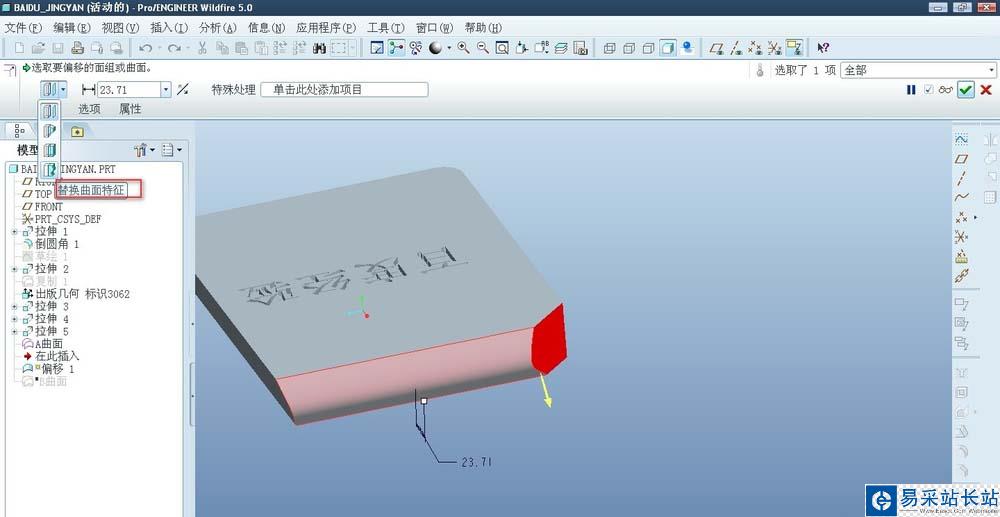 3、選擇編輯-偏移-替換曲面特征。