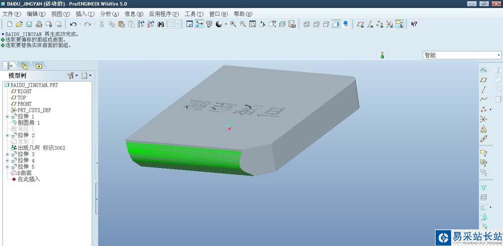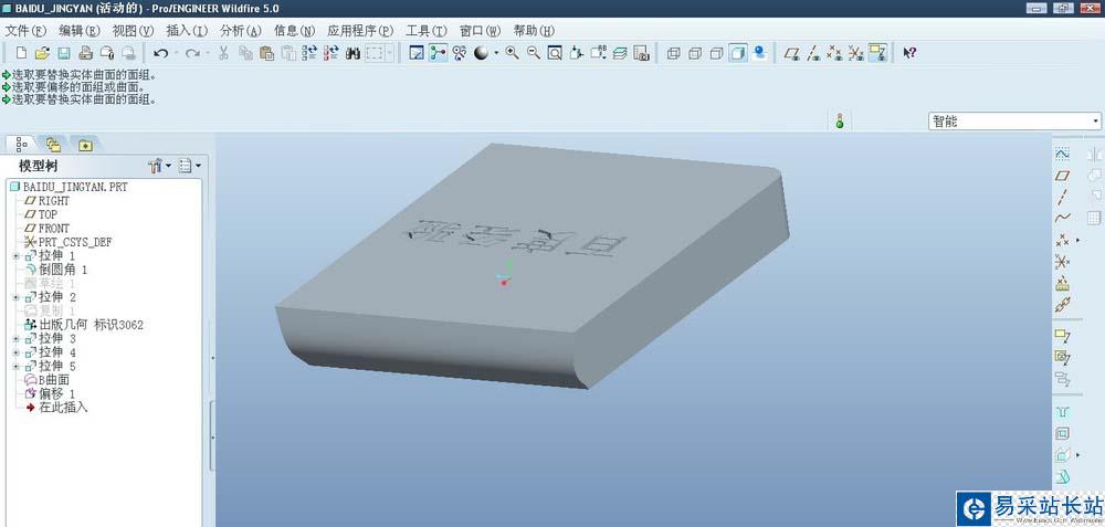 4、選擇A曲面進(jìn)行替換。替換后的特征如圖顯示。
