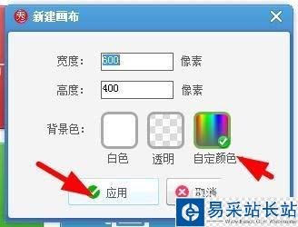 2、點擊右上角的新建按鈕來新建一張(自定義顏色)畫布點擊應用