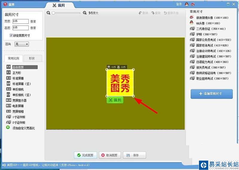5、點擊上方的裁剪按鈕 ,調整適當的大小 ,點擊完成裁剪
