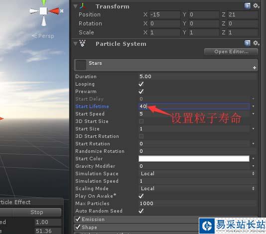 4、設置Start Lifetime(粒子的壽命(開始時)). 由于星星一般移動比較慢,例子壽命(秒數)設置的長一點。