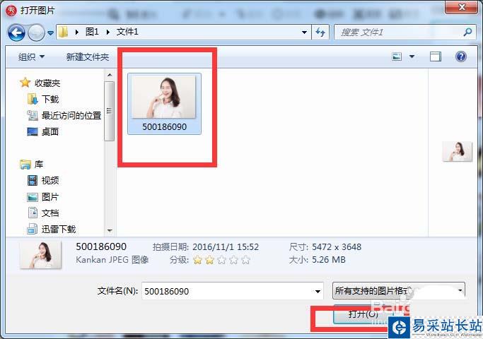 3、彈出打開對話框,把這個美女圖片打開。