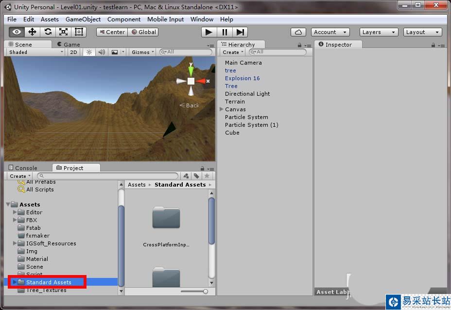 3、在項目文件夾中會多出一個“Standard Assets”文件夾。