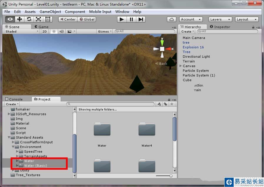 4、在“Standard Assets”文件夾里面我們可以找到“Water”與“Water(Basic)”這兩個文件夾。