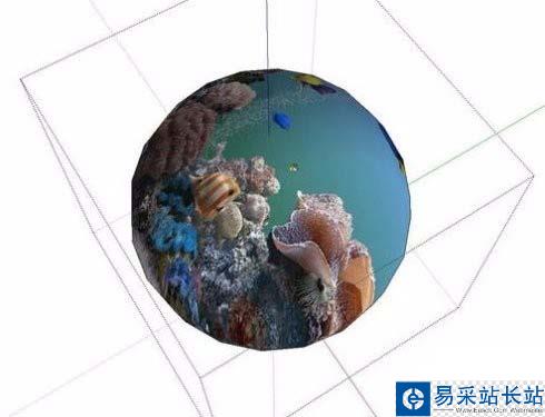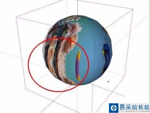 6、再來說說球形的貼圖方式吧,其實跟平面的基本一致。這是原始的貼圖方式所顯示的貼圖