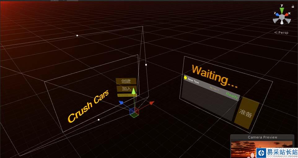 1、首先我們用一個UI場景做范例。我們希望相機從對準第一個界面,平滑的扭頭到第二個界面。