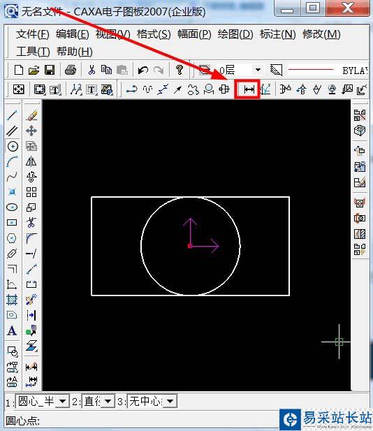 1、先打開CAXA軟件,隨便畫一個圖形(我這里畫一個長方形和一個圓作為例子),如圖所示