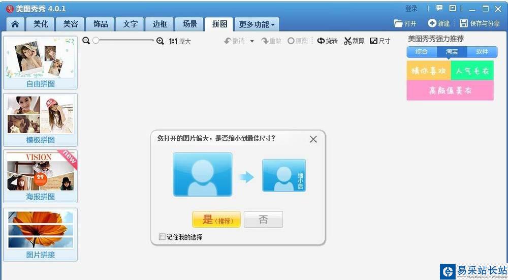 1、打開美圖秀秀,點擊拼圖,點擊左側(cè)的海報拼圖。