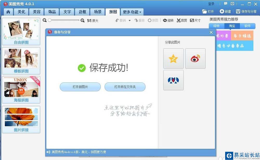 以上就是美圖秀秀制作一個拼接海報的教程,請繼續(xù)關(guān)注錯新站長站。