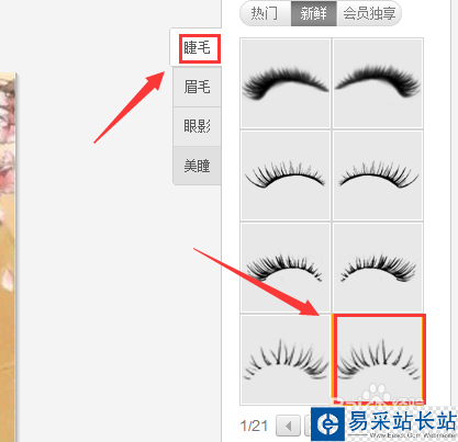 6、點擊眼睫毛在人物上就添加了眼睫毛,如圖所示: